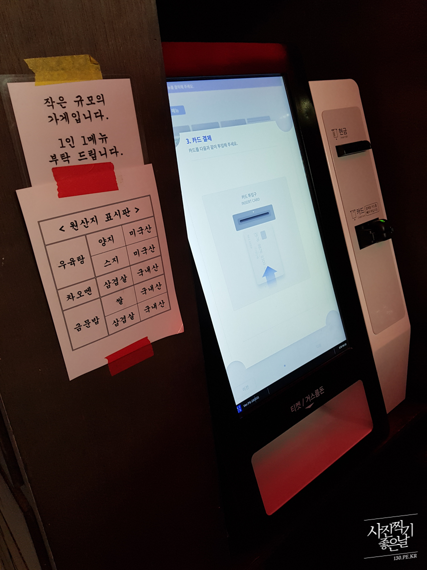 ์ž…๊ตฌ ๋ฐ”๋กœ์˜†์— ํ‚ค์˜ค์Šคํฌ๊ฐ€ ์žˆ์–ด์„œ ํ‹ฐ์ผ“์œผ๋กœ ์ฃผ๋ฌธํ•˜๋Š” ์‹œ์Šคํ…œ.