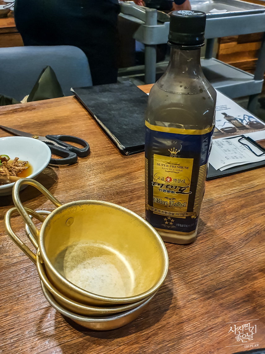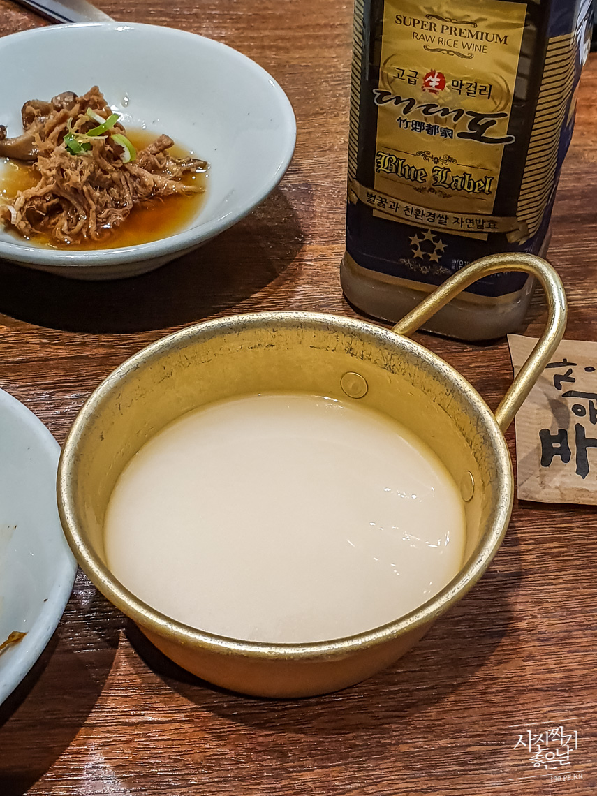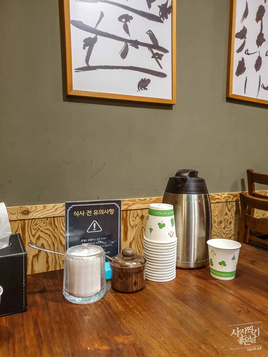 ๋ฉ๋ดํ์ ์จ ์๋ ์๊ธ๊ณผ ๋ค๊นจ๊ฐ๋ฃจ๊ฐ ํ ์ด๋ธ๋ง๋ค ๋์ฌ ์์ต๋๋ค.