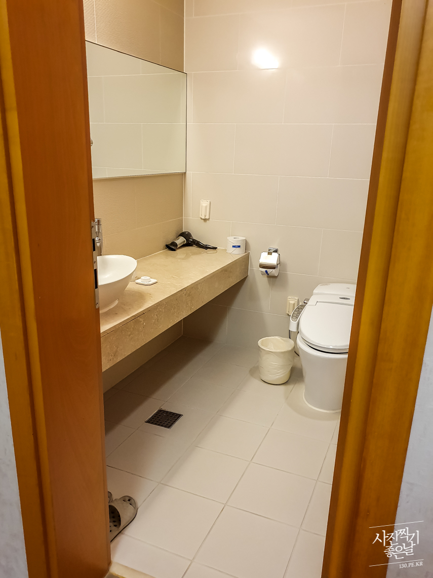 ํฐ ๋ฐฉ์ ์ฌ์ง์ ๋๋ค. ๋๋ธ์นจ๋๊ฐ ์๊ณ ํ์ฅ์ค์ด ๋ธ๋ ค ์์ต๋๋ค.