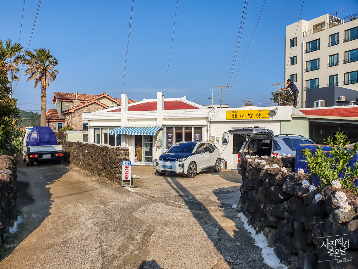 ์ œ์ฃผ๋„์— ์™”์œผ๋‹ˆ ํ•ด์‚ฐ๋ฌผ์„ ํ•œ ๋ฒˆ์€ ๋จน์–ด์•ผ ํ•˜์ง€ ์•Š๊ฒ ๋‚˜ ์‹ถ์–ด์„œ ์กฐ์‹์„ ๋”ฐ๋กœ ์‹ ์ฒญํ•˜์ง€ ์•Š๊ณ  ํ•ด๋…€๋ฐฅ์ƒ์—์„œ ์•„์นจ์„ ๋จน๊ธฐ๋กœ ํ–ˆ์Šต๋‹ˆ๋‹ค. 6์ธ์ด๋ผ ํ˜น์‹œ๋‚˜ ์‹ถ์–ด ๋ฏธ๋ฆฌ ์ „ํ™”๋ฅผ ํ•ด์„œ ์˜ˆ์•ฝํ–ˆ๋Š”๋ฐ ์‹๋‹น ์ธก ๋Œ€๋‹ต์ด ๋„ˆ๋ฌด ํ‰๋ช…์Šค๋Ÿฌ์›Œ์„œ ์˜ˆ์•ฝ์ „ํ™” ๊ฑธ์—ˆ๋˜ ์—ฌ์ง์›์ด ๋„ˆ๋ฌด ๊ธฐ๋ถ„ ๋‚˜๋น ํ–ˆ๋‹ค๋Š”; ๋ถ€์‚ฐ ์—ฌ์ž๋ฅผ ๊ธฐ๋ถ„ ๋‚˜์˜๊ฒŒ ํ•  ์ •๋„๋ฉด...์ œ์ฃผ๋„์˜ ๋ฌด๋š๋šํ•จ์ด ๊ฒฝ์ƒ๋„ ๋ฒ„๊ธˆ๊ฐ€๋Š” ๊ณณ์ด์—ˆ๋‚˜?