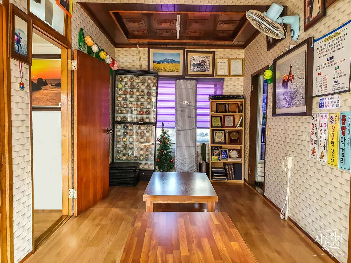 ๋ฐฉ์—๋Š” ํ…Œ์ด๋ธ”์ด 5๊ฐœ๊ฐ€ ์žˆ๊ณ  ๊ฑฐ์‹ค๊นŒ์ง€ ์ „๋ถ€ 7๊ฐœ๋„ค์š”. ๊ฑฐ์‹ค(์ž…๊ตฌ์ชฝ) ๋ฒฝ์— ๊ฐ€์กฑ์‚ฌ์ง„๋“ค์ด ๊ฑธ๋ ค ์žˆ๋Š” ๊ฒŒ ์˜›๋‚  ์‹œ๊ณจ์— ์žˆ๋˜ ์™ธํ• ๋จธ๋‹ˆ ์ง‘์ด ์ƒ๊ฐ๋‚ฌ์Šต๋‹ˆ๋‹คใ…Žใ…Ž