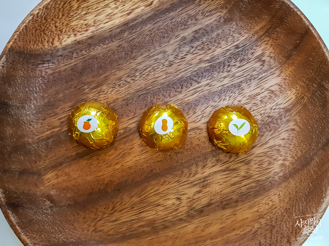 ํ๋ผ๋ด, ๋ น์ฐจ, ์ฐ๋๋ ์ฝฉ 3๊ฐ์ง ๋ง์ ์ด์ฝ๋ฆฟ์ ๋๋ค.