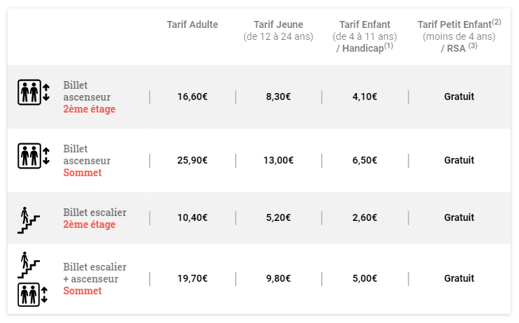 All the practical information you need for your visit to the Eiffel Tower: buy a ticket (Rates: 16 to 25 € maximum for adults and 4 to 12,5 € for children and young people), learn about the monument or news and events in the tower