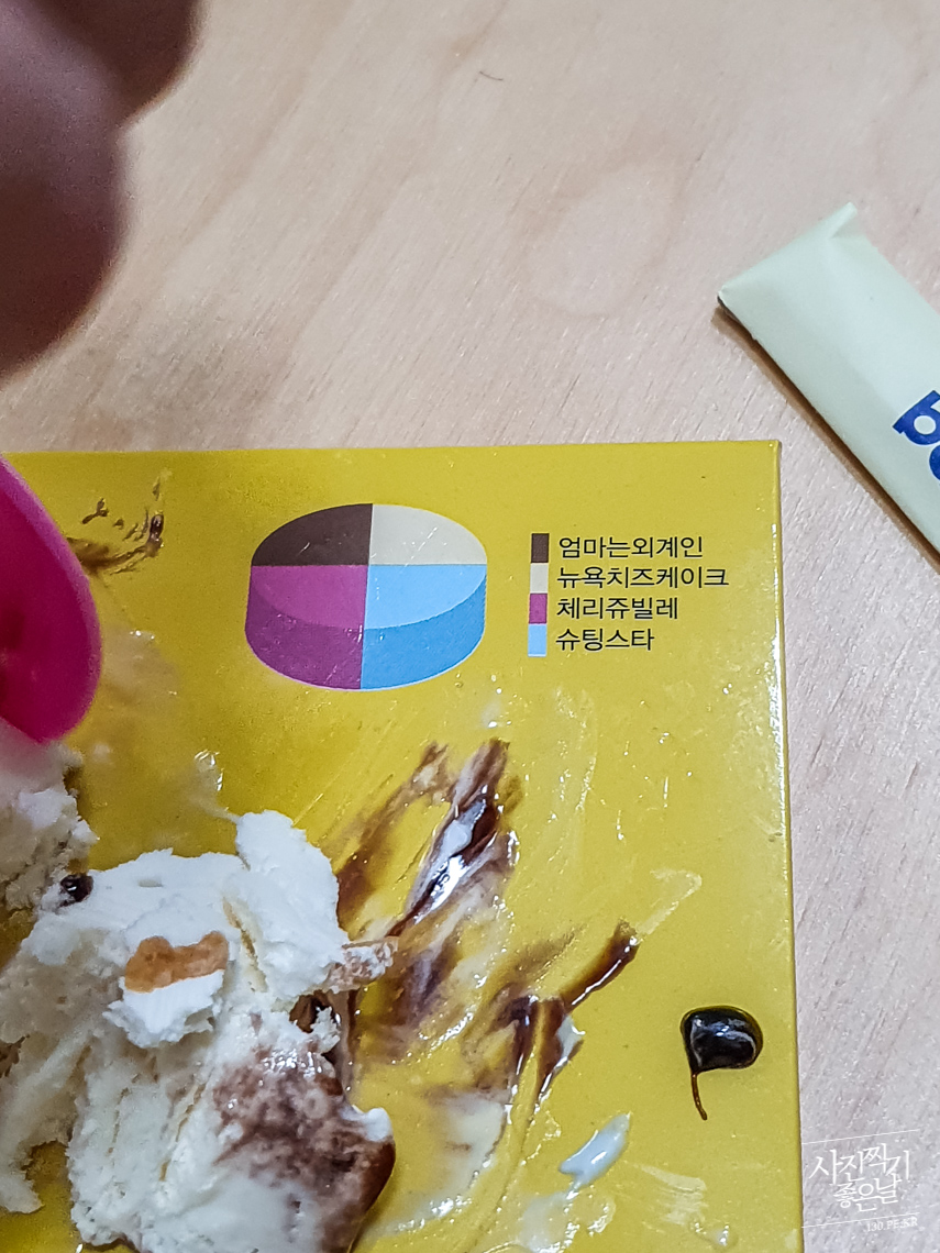 ์์ ๋ ์ง๋ฅผ ๋ผ์ด๋ด๋ฉด ์์ ์์ด์คํฌ๋ฆผ์ด ๋ณด์ ๋๋ค. 4๊ฐ์ง ๋ง์ 4๋ฑ๋ถํด์ ๋ฃ์ด๋์์ด์