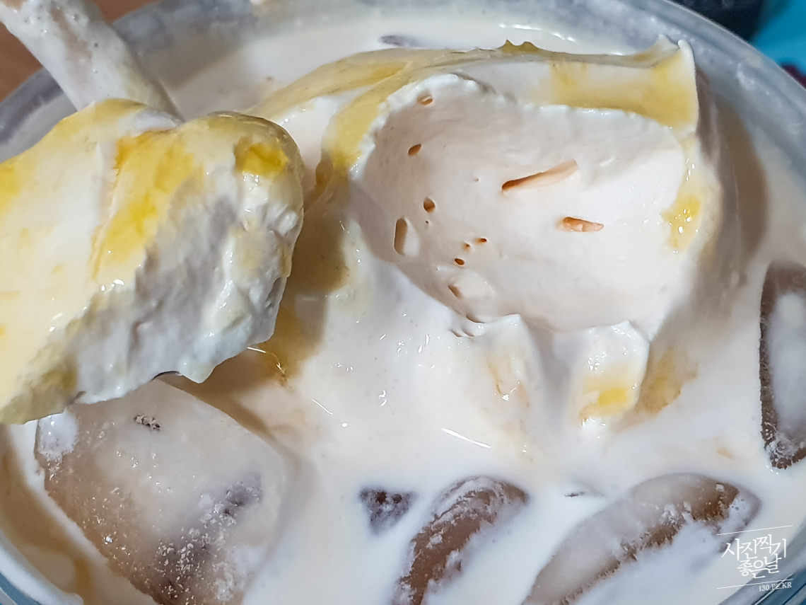 ์ฌ์ง๋ง ๋ณด๊ณ ๋น์ฐํ ์์ด์คํฌ๋ฆผ์ผ ๊ฑฐ๋ผ๊ณ ์๊ฐํ๋๋ฐ ์ฝ๊ฐ ์ซ๋ํ ์ง๊ฐ์ ํฌ๋ฆผ์ด ์ฌ๋ผ๊ฐ ์์ต๋๋ค. ๋ถ๋๋ฝ๊ณ ๋ฌ์ฝคํ ๋ฐ๋๋ผ ํฌ๋ฆผ ๊ฐ์ ๋ง ์์ ๋ ธ๋ ์ค๋ ์ง ์๋ฝ์ด ๋ฟ๋ ค์ ธ ์์ต๋๋ค. ์์ฝคํ ๋ง์ด ์์ฃผ ์ด์ง ํ๊ธฐ๋ ๊ฒ ์ปคํผ๋ ์ ์ด์ธ๋ฆด ๊ฑฐ๋ผ๊ณ ์๊ฐํ๋๋ฐ ๊ฑฐ๋ถ๊ฐ ์์ด ์์ํ ์ ๋๋ก๋ง ๋๊ปด์ง๋ค์.