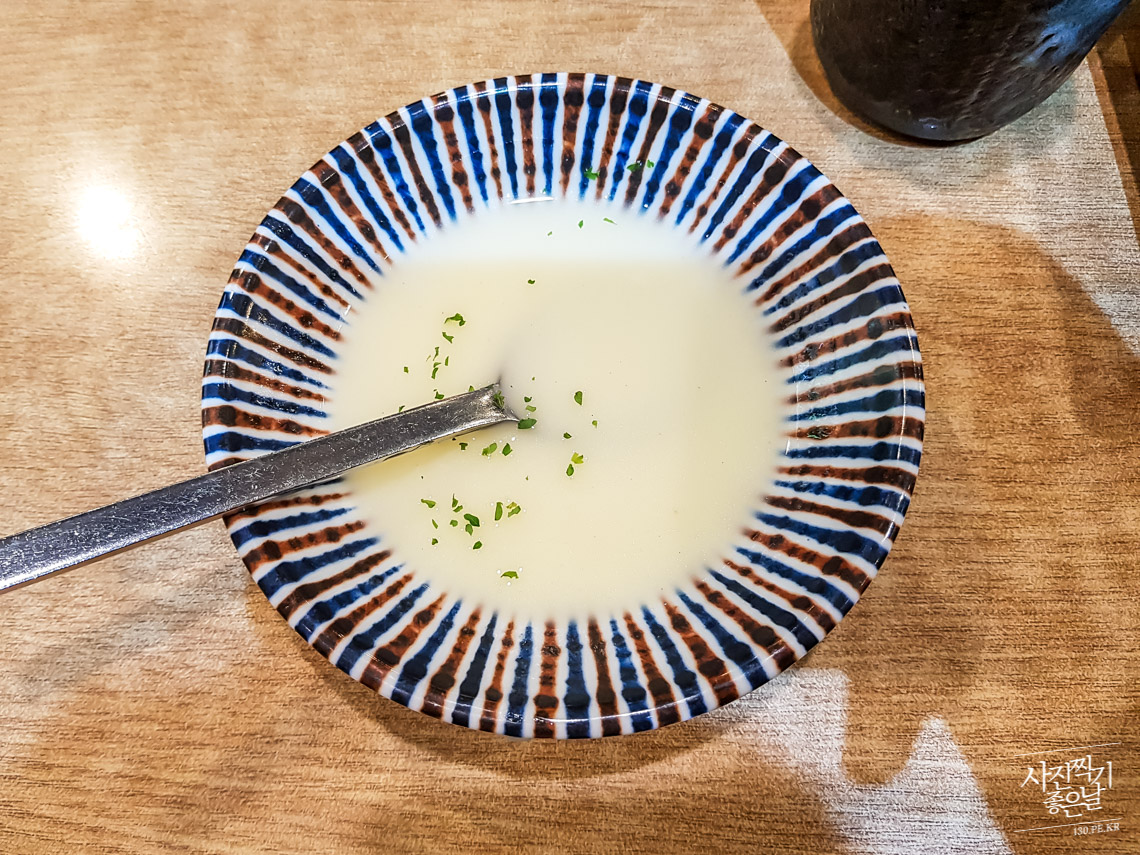 ์กฐ๊ธ ๋จน๋ค๋ณด๋ฉด ์ธํธ์ ํฌํจ๋ ๋ฏธ๋ ์ฐ๋์ด ๋์ต๋๋ค. ์ฐฌ ์์๋ค ์ฌ์ด์์ ๋ฐ๋ปํ ์ฐ๋๊ตญ๋ฌผ์ด ๊ณ๋ค์ฌ ๋จน๊ธฐ ์ข์ต๋๋ค.