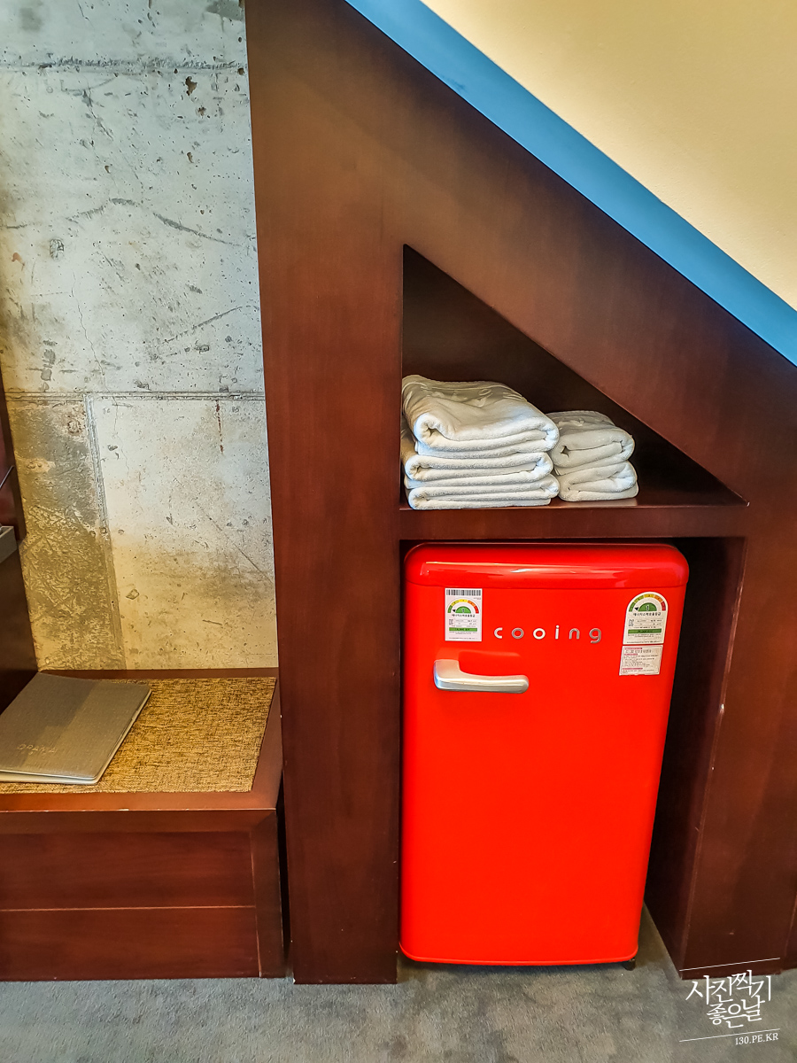 ๋ฃจํํ ๊ตฌ๊ฒฝ๊ฐ๋ ค๊ณ ์๋ฆฌ๋ฒ ์ดํฐํ๋ก ๋์ค๋ฉด ๊ทธ ์์ผ๋ก ์ด๋ ๊ฒ ์ผ์ธ ํ์ฅ์ด ์์ต๋๋ค. ์ด ์ผ์ธํ์ฅ ์ผ์ชฝ์ผ๋ก ๋ณด์ด๋ ํ๊ด๋ฌธ(?)๊ฐ์ ๊ณณ์ด ๋ ๋ค๋ฅธ ๊ฐ์ค์ ๋๋ค. ์ด์ชฝ ๊ฐ์ค์ ๊ฐ์ธ ํ์ฅ์ด ๋ฐ๋ก ์๊ธฐ๋๋ฌธ์ ์ผ์ธ ํ์ฅ์ ๊ณต๋์ผ๋ก ์ด์ฉํ๋ค๊ณ ํด์. ๊ฐ์ธ ํ์ฅ์ด ์๋ ๊ฐ์ค ์๋๋ ์ด์ฉ๊ฐ๋ฅํ๊ตฌ์. ์ด์ชฝ์ ๋ฌต์ผ๋ฉด์ ํ์ฅ ์ด๋ค๊ณ ํ๋ฉด ๋ฌผ ์ฑ์์ฃผ๋ ค๋+_+