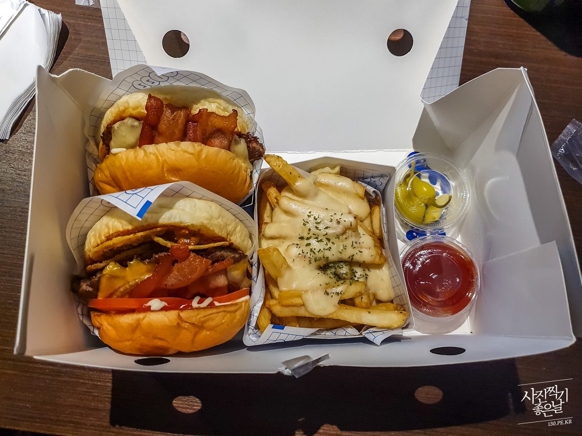 ์ ํฌ๋ ํผ์ฆ๋ฒ๊ฑฐ 1๊ฐ, ์๋ฉ๋ฆฌ์นธ ๋ฒ๊ฑฐ 1๊ฐ, ์น์ฆ๊ฐ๋ฆญ ๊ฐํ๋ฅผ ์ฃผ๋ฌธํ์ต๋๋ค.