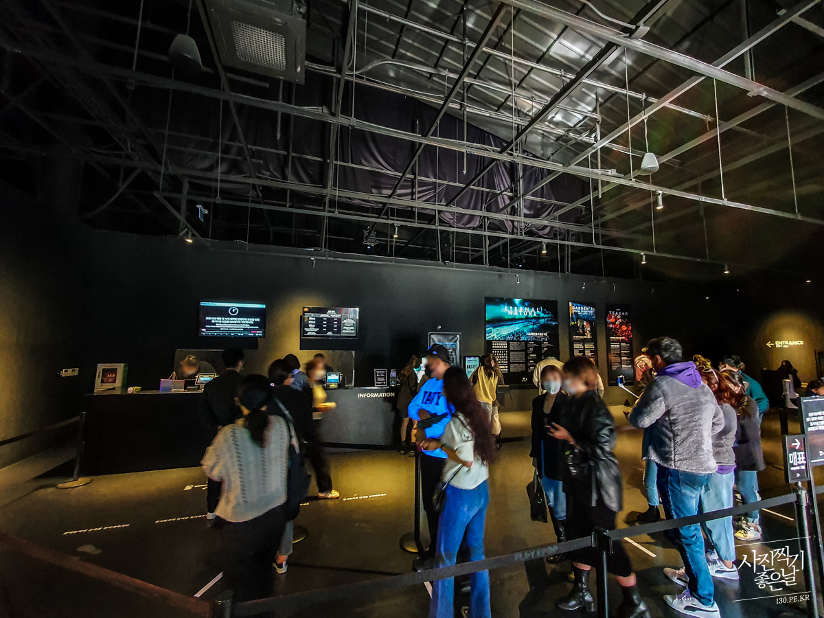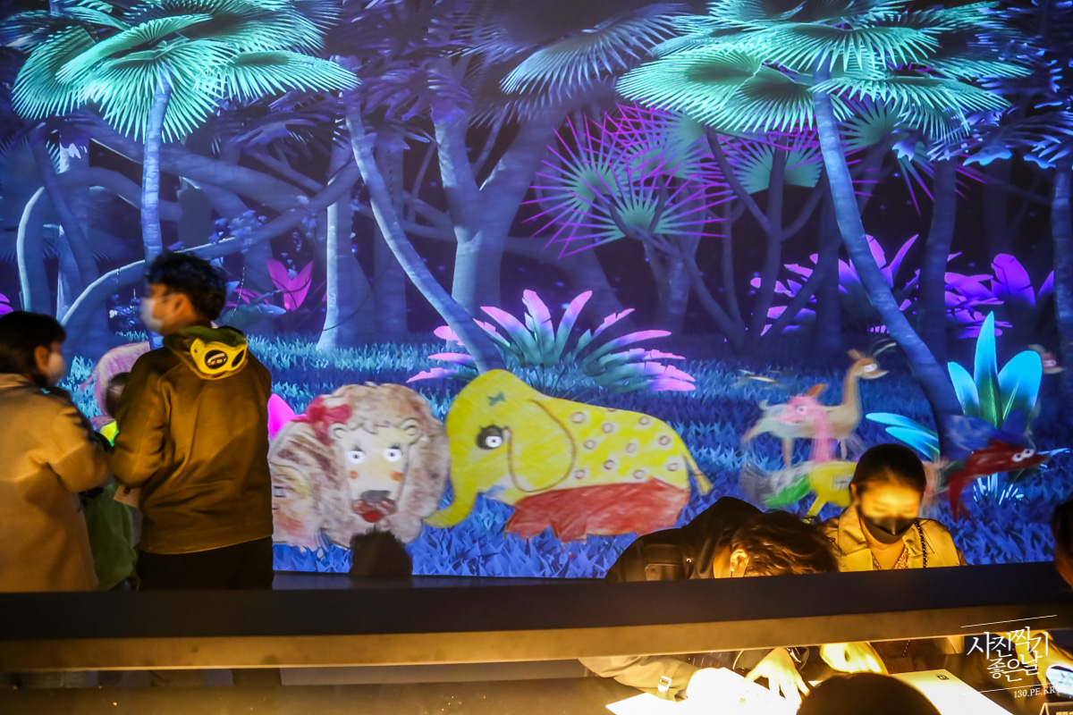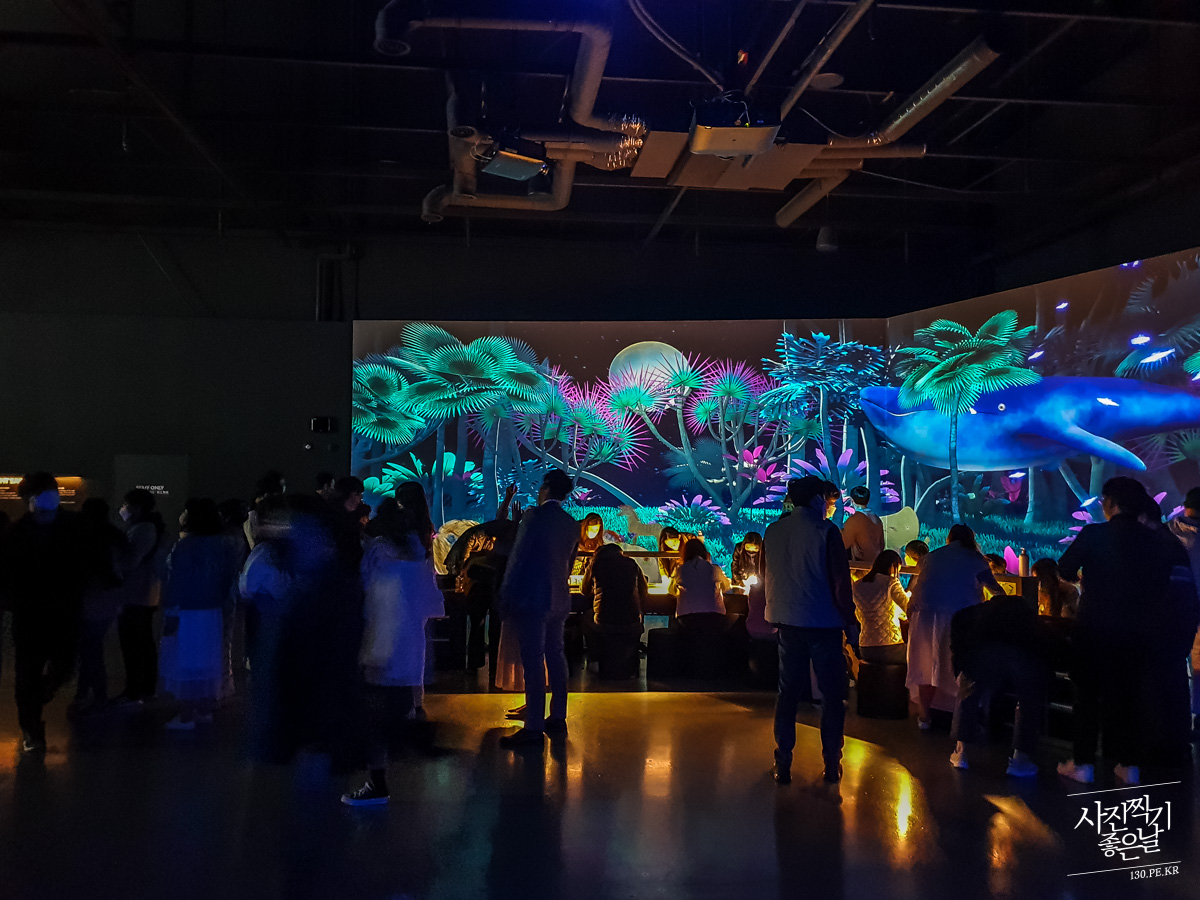 ํด๋ ๋ฐฅ์์์ ์์นจ์์ฌ๋ฅผ ๋ง์น๊ณ ์ฐพ์ ๊ณณ์ ๋น์ ๋ฒ์ปค์ ๋๋ค. ์ด๋์ด ๊ณต๊ฐ์์ ํ๋ก์ ํฐ๋ก ๋งตํ์ผ์ ๋น์ทํ๊ฒ ์ ์(?)๋ฅผ ํ๋ค๊ณ ํฉ๋๋ค. ์์ ์ ๋์ฟ ์ค๋ค์ด๋ฐ์ ๋น์ทํ ์ ์์ธ teamLabBorderless๋ฅผ