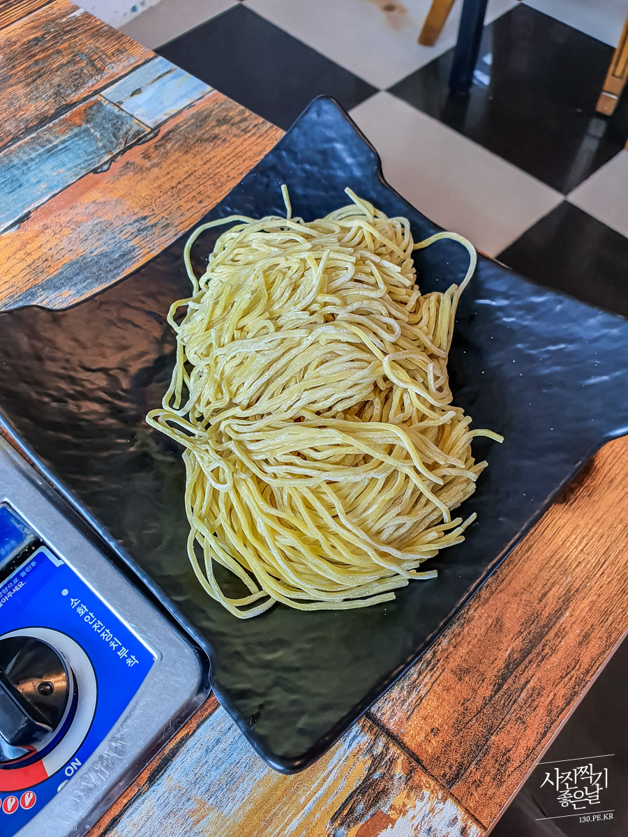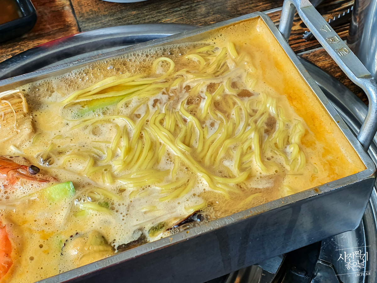 ๊ตญ๋ฌผ์ด ๋๊ธฐ ์์ํ๋ฉด ๋ฉด์ ๋ฃ๊ณ ๋์ ๋๋ค. ํ๋ฒ์ ๋ค ๋ฃ์ผ๋ฉด ๋ก์ง์ ์๋ค๊ณ ์๋ ค์ฃผ์ญ๋๋ค. ๋จน์ผ๋ฉด์ ๋๋ ์ ๋์ฌ ๋จน์ต๋๋ค.