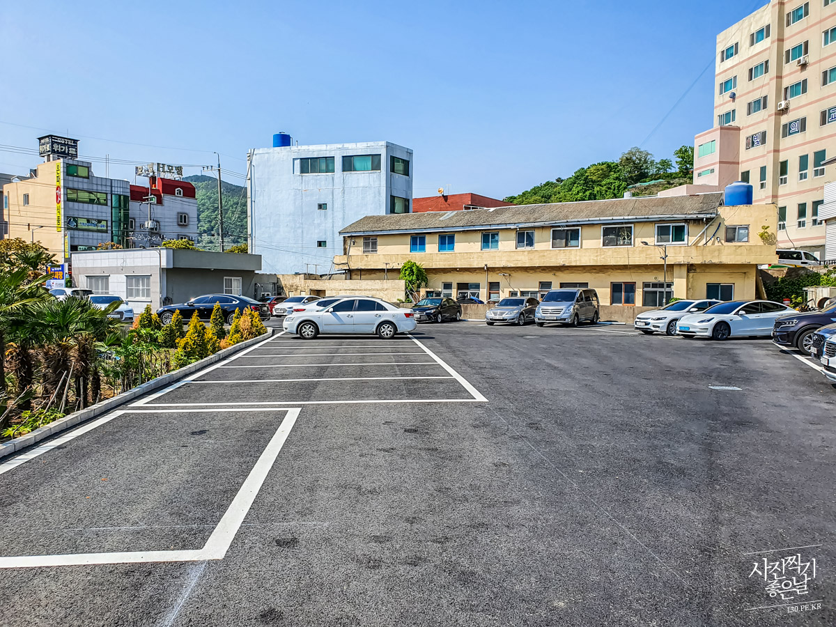 정문은 저쪽이고요 제가 들어온 문은 주차장과 연결된 뒷문.