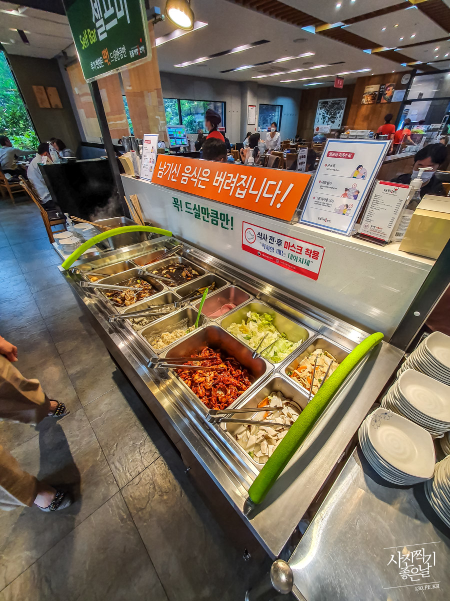 셀프바는 이렇게 차려져 있고요 저~ 끝에는 어묵에 국물안에 담겨 있어서 친구는 어묵을 많이 가져다 먹었다는... 어째 어묵먹은 사진이 하나도 없네?