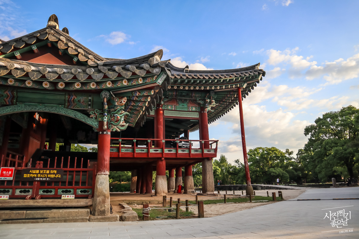 ์ด ๊ฑด๋ฌผ์ ์กฐ์ ์๋ ์ด๋ฆ ๋ ํฉํฌ ์ ์น์ด ๋จ์์ ์ ๋ฐฐ๋์์ ๋ ์ง์ ๊ฒ์ผ๋ก ์ฒ์์๋ ๊ดํต๋ฃจ๋ผ ๋ถ๋ ๋ค. ์ธ์ข 26๋ (1444) ์ ์ธ์ง๊ฐ ๊ฑด๋ฌผ์ด ์ ์ค ์์ ๋ฌ๋๋ผ ๊ถ์ ์ธ ๊ดํ์ฒญํ๋ถ๋ฅผ ๋ฎ์๋ค ํ์ฌ ๊ดํ๋ฃจ๋ก ๊ณ ์ณ ๋ถ๋ฅด๊ฒ ๋์๋ค. ์ดํ ์ ์กฐ 15๋ (1582)์๋ ์ ์ฒ ์ด ๊ฑด๋ฌผ ์์ ๋ค๋ฆฌ๋ฅผ ๋ง๋ค๊ณ ๊ทธ ์๋ฅผ ๊ฐ๋ก์ง๋ฌ ์ค์๊ต๋ผ๋ ๋ฐ์ํ ๊ต๊ฐ์ ๋ค๋ฆฌ๋ฅผ ๋์๋ค. ์ง๊ธ์ ๊ฑด๋ฌผ์ ์ ์ ์ฌ๋(1597) ๋ ๋ถ์ ํ ๊ฒ์ ์ธ์กฐ 4๋ (1626)์ ๋ค์ ์ง์ ๊ฒ์ด๋ค. ๊ฑด๋ฌผ ๋ถ์ชฝ ์ค์์ ์ธต๊ณ๋ ์ ์ ๊ธฐ์ฐ๋ ๊ฑด๋ฌผ์ ์งํฑํ๊ธฐ ์ํด ๊ณ ์ข ๋ ๋ง๋ค์๋ค.