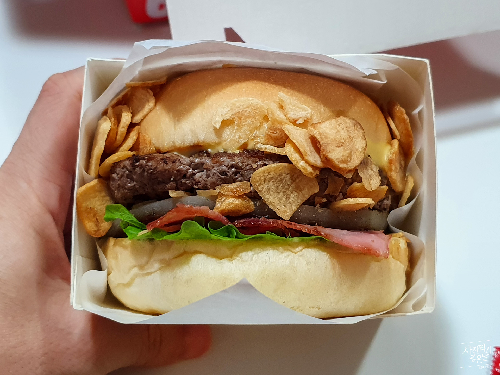 ์ฝ๋ก๋ ๋๋ฌธ์ ํ๋์ ํด๋ฆฌ๋จ๊ธธ ์ชฝ์ผ๋ก ๋ฐ๊ธธ์ ๋๊ณ ์๋ ์๊ธฐ์ ๋ฐฐ๋ฌ๋ก '๋ฒ๊ฑฐ์ต' ํ๋ฒ๊ฑฐ๋ฅผ ์ฃผ๋ฌธํด๋ดค์ต๋๋ค. ์ด๊ฑด ์์ ์ ์กฐ๊ฐ ํผ์๋ฅผ ํ๋ ํฌ๋ฅดํ์ ๊ฐ๋ค๊ฐ ์ฐ์ ์ฌ์ง์ธ๋ฐ ์ผ์ชฝ์ ๋ ธ๋์์ด ์น