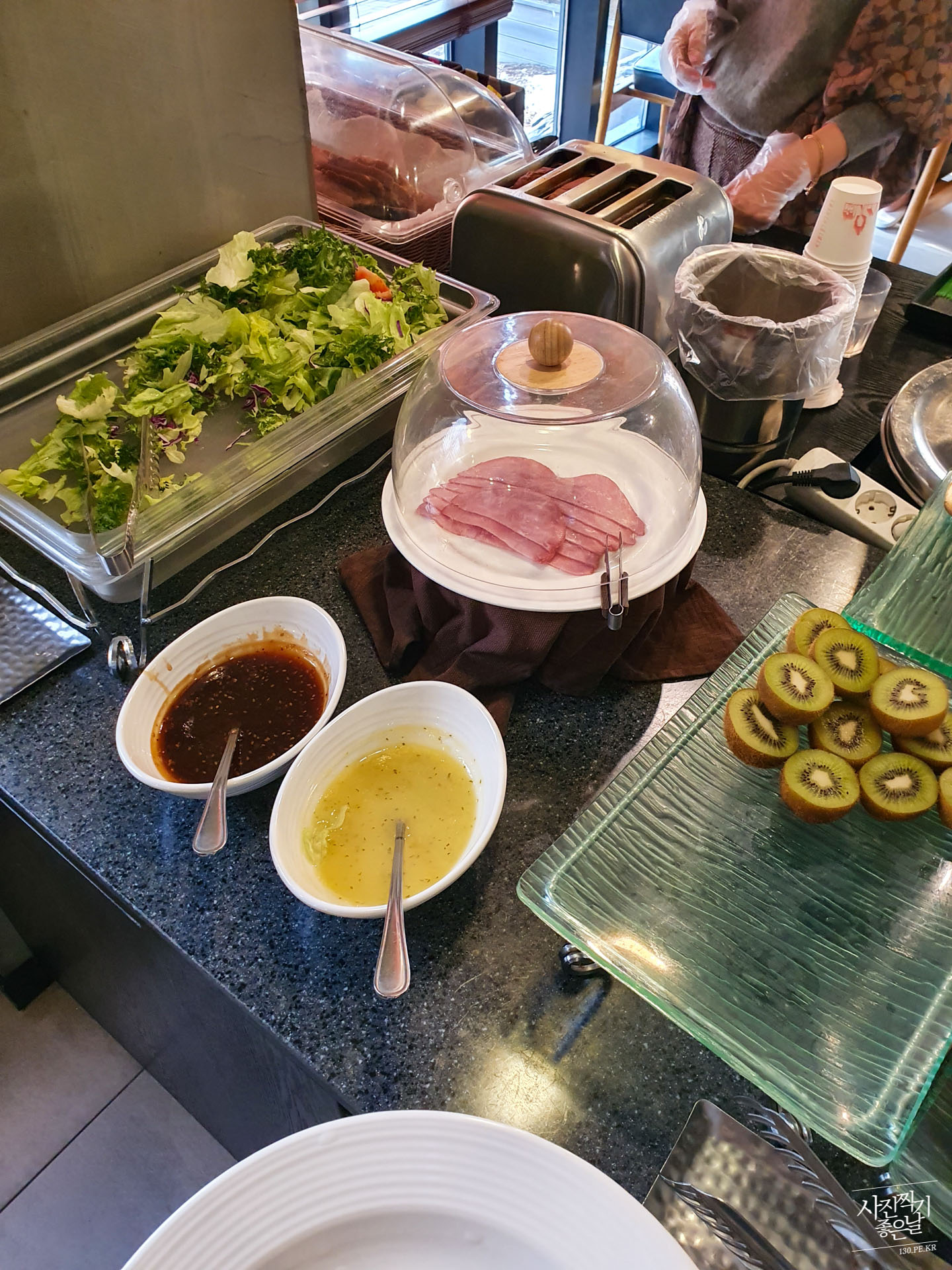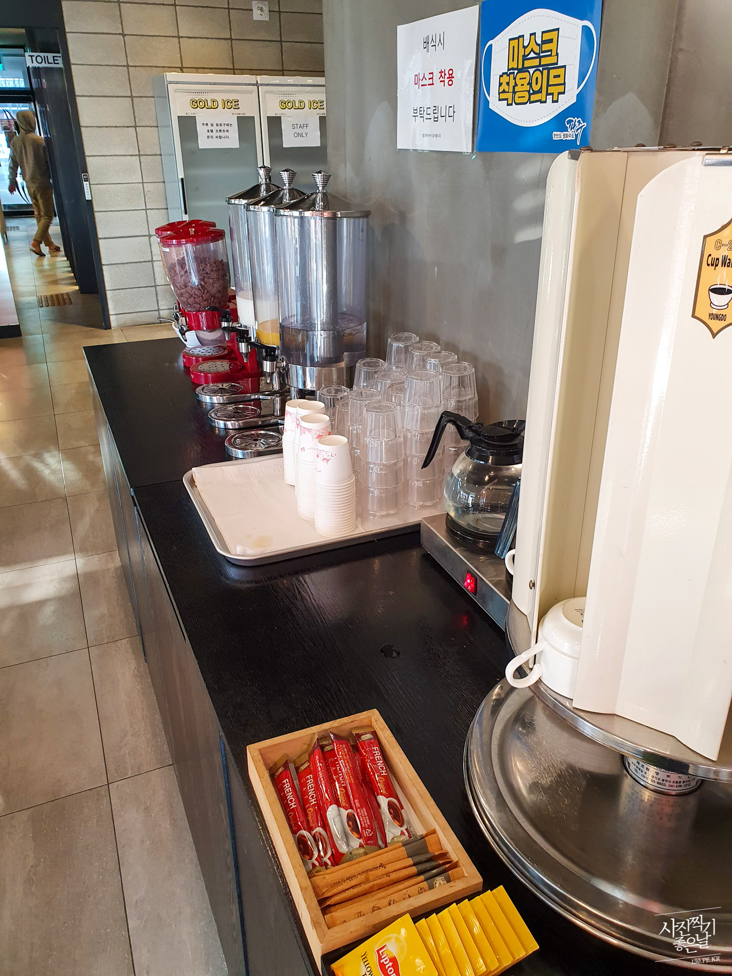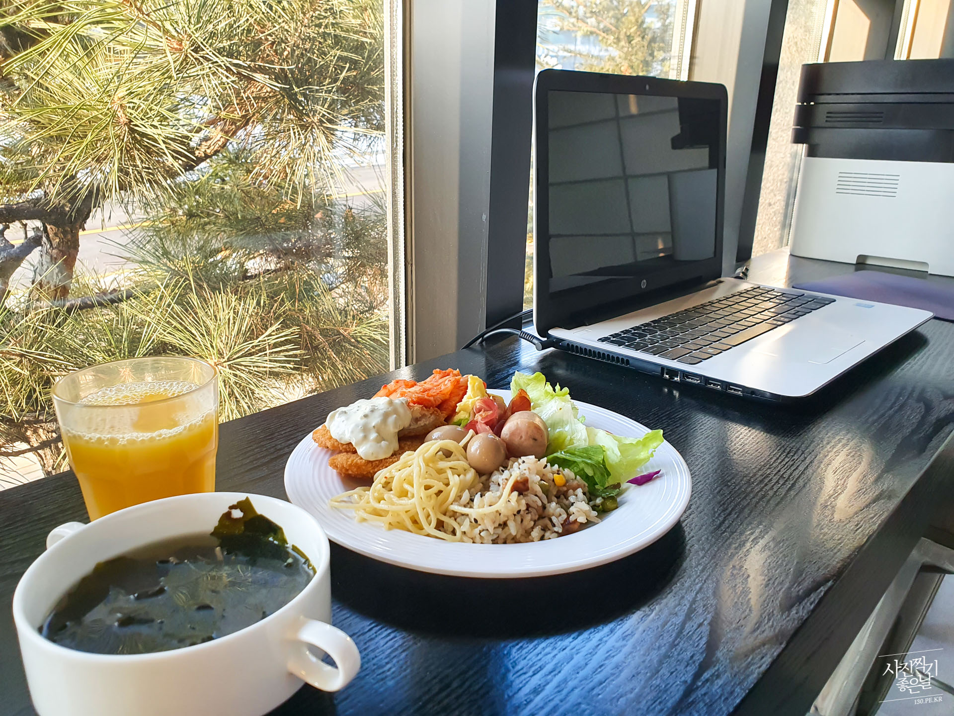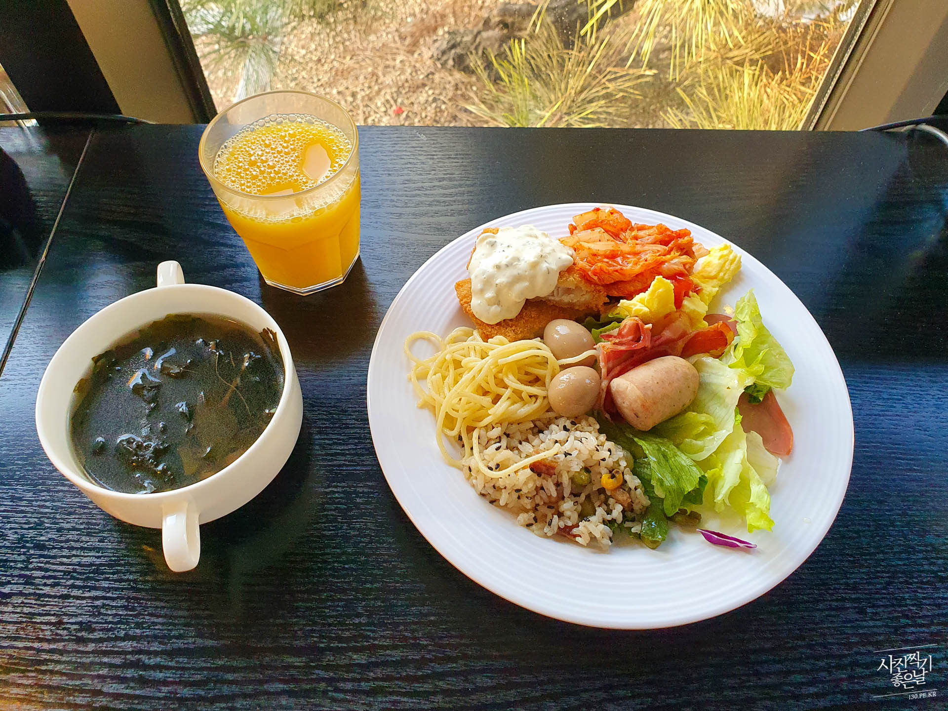 ํธํ 1์ธต์ ์๋ ์นดํ ๋ ๋ ผ์์ ์กฐ์์ ๋จน์ต๋๋ค. ์ด๊ฑด ์กฐ์ ๋จน๊ณ ๊ทผ์ฒ ํ ๋ฐํด ๋๋ค๊ฐ ์ฐ์ ์ฌ์ง.