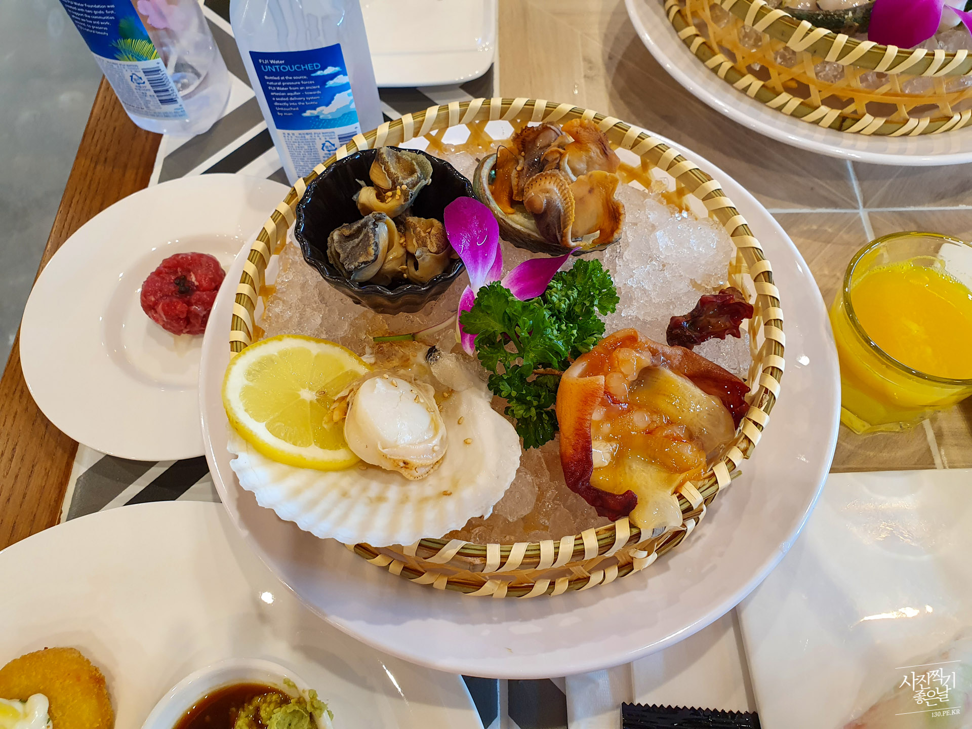 해산물 코너는 원하는 해산물을 4가지 고르면 각자 테이블로 가져다줍니다.