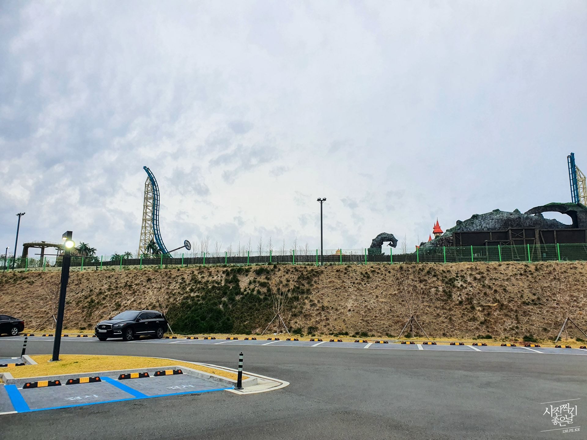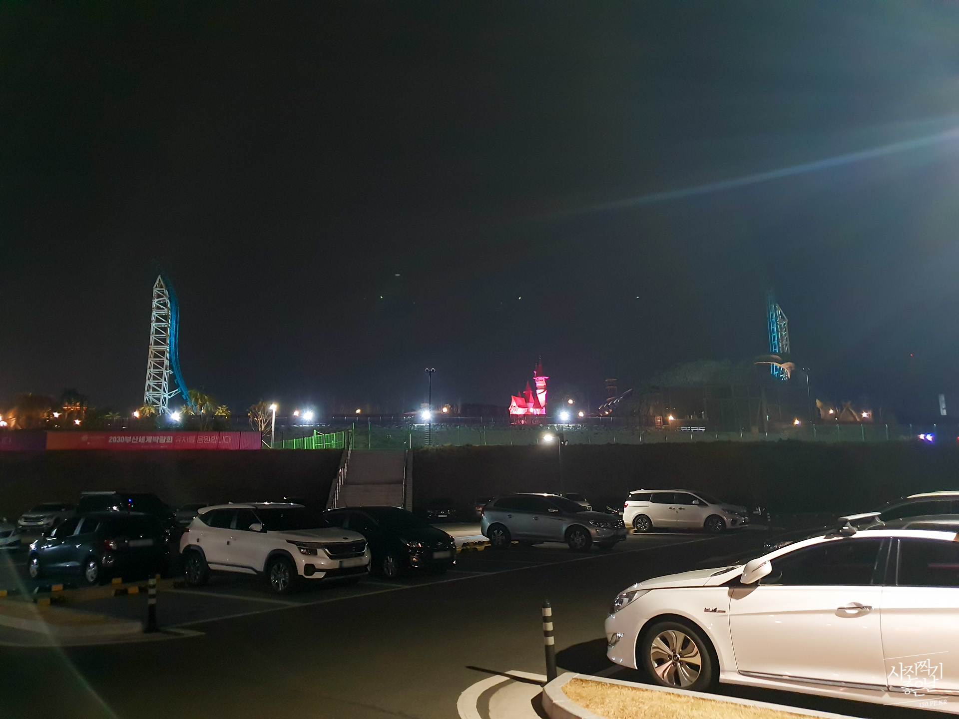 주차장 너머로는 부산 롯데월드가 보입니다. 왼쪽에 뭔가 놀이기구가 왔다 갔다 하더군요. 미리 다녀온 사람들 유튭을 보니 꽤나 을씨년스럽던데;;
