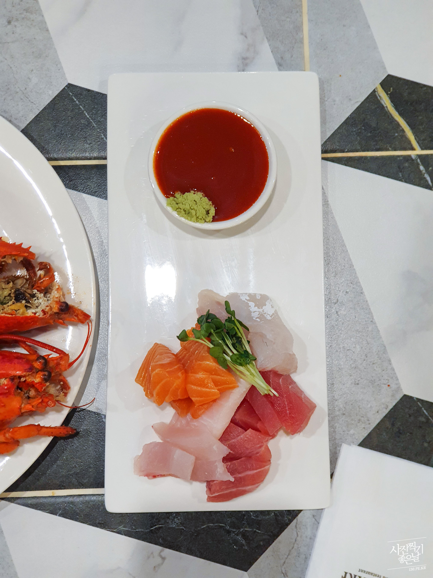 제 뷔페 첫 접시는 언제나 회인데 랍스터만 먹을 수 없어서 바로 한 접시 가지러 갔습니다.