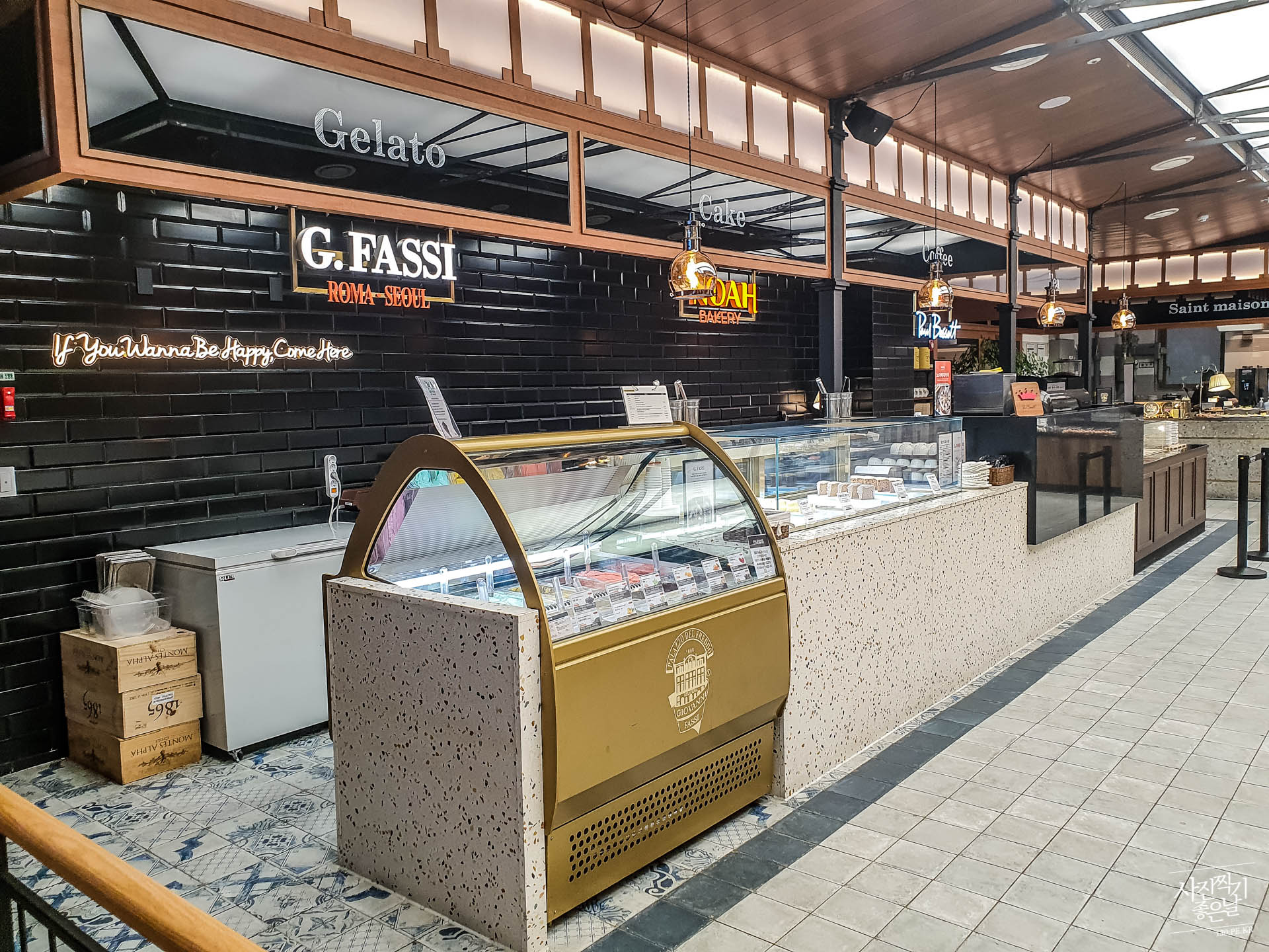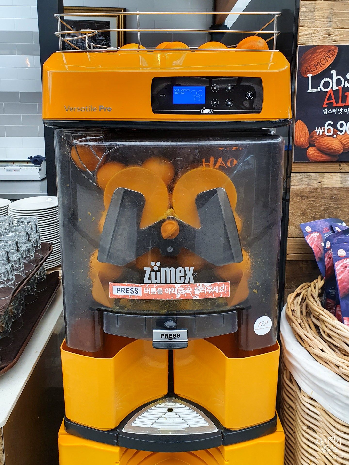 ์ ์ฅ ๋๊ธฐํ๋ฉด์ ๋ณด๊ฒ ๋๋ ๋งค์ฅ ๋ด์ ๋ชจ์ต. ์ ๊ตฌ ์ชฝ์ ๊ณผ์ผ๊ณผ ๋์ ํธ ์ฝ๋๊ฐ ์์ต๋๋ค.