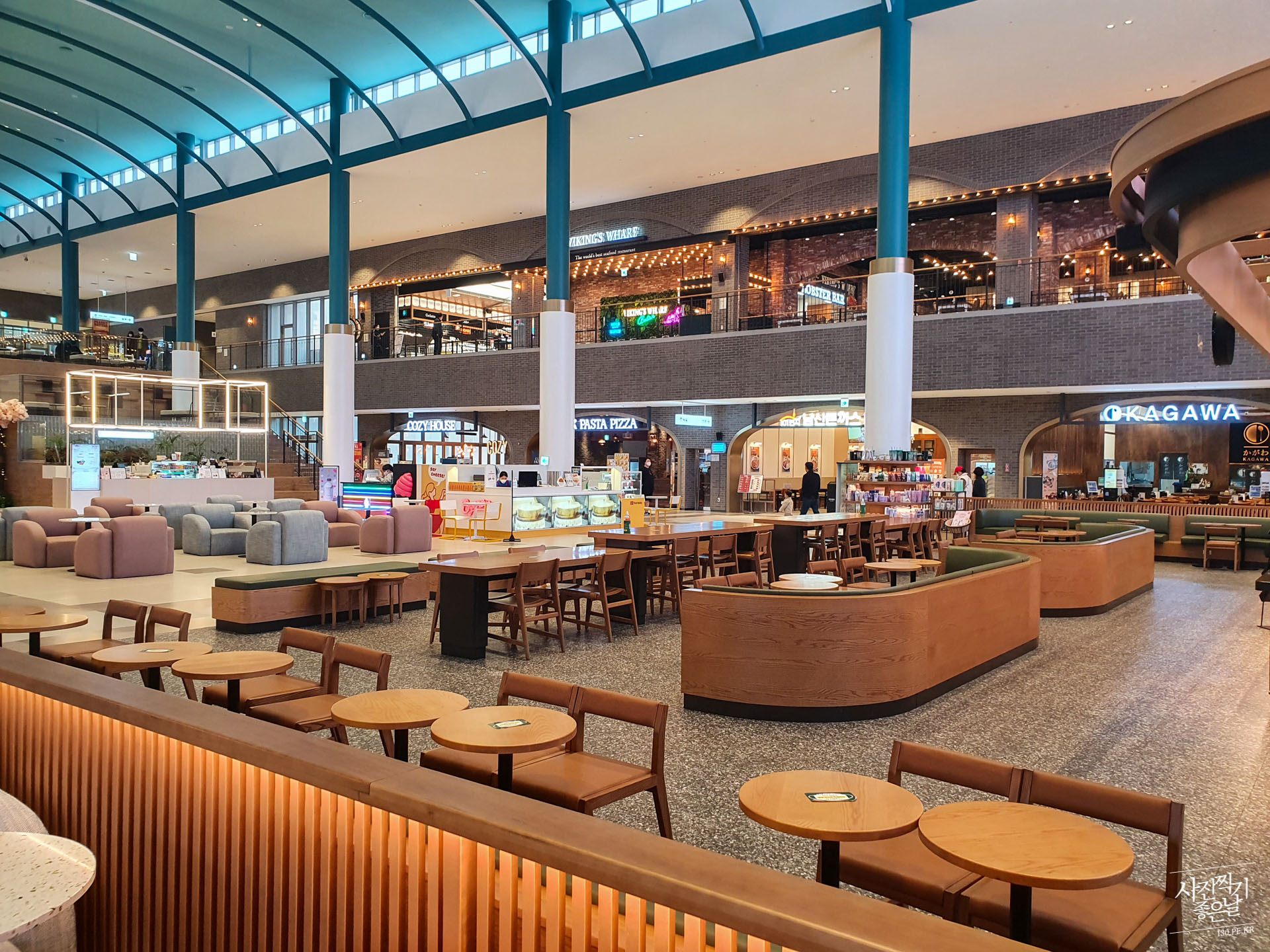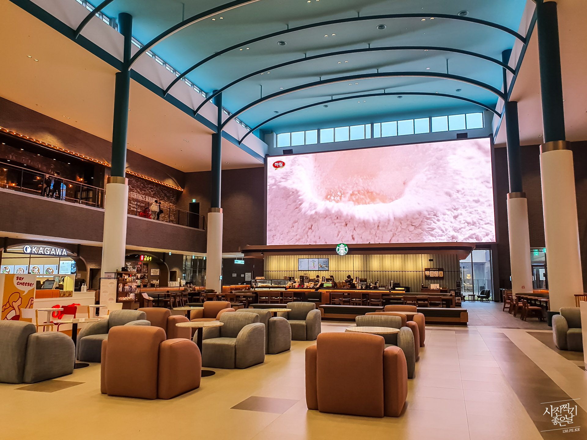 중앙에 탁 드인 공간이 있고 양 옆으로 식당들이 줄지어 있어요. 가운데 카페는 스타벅스+_+