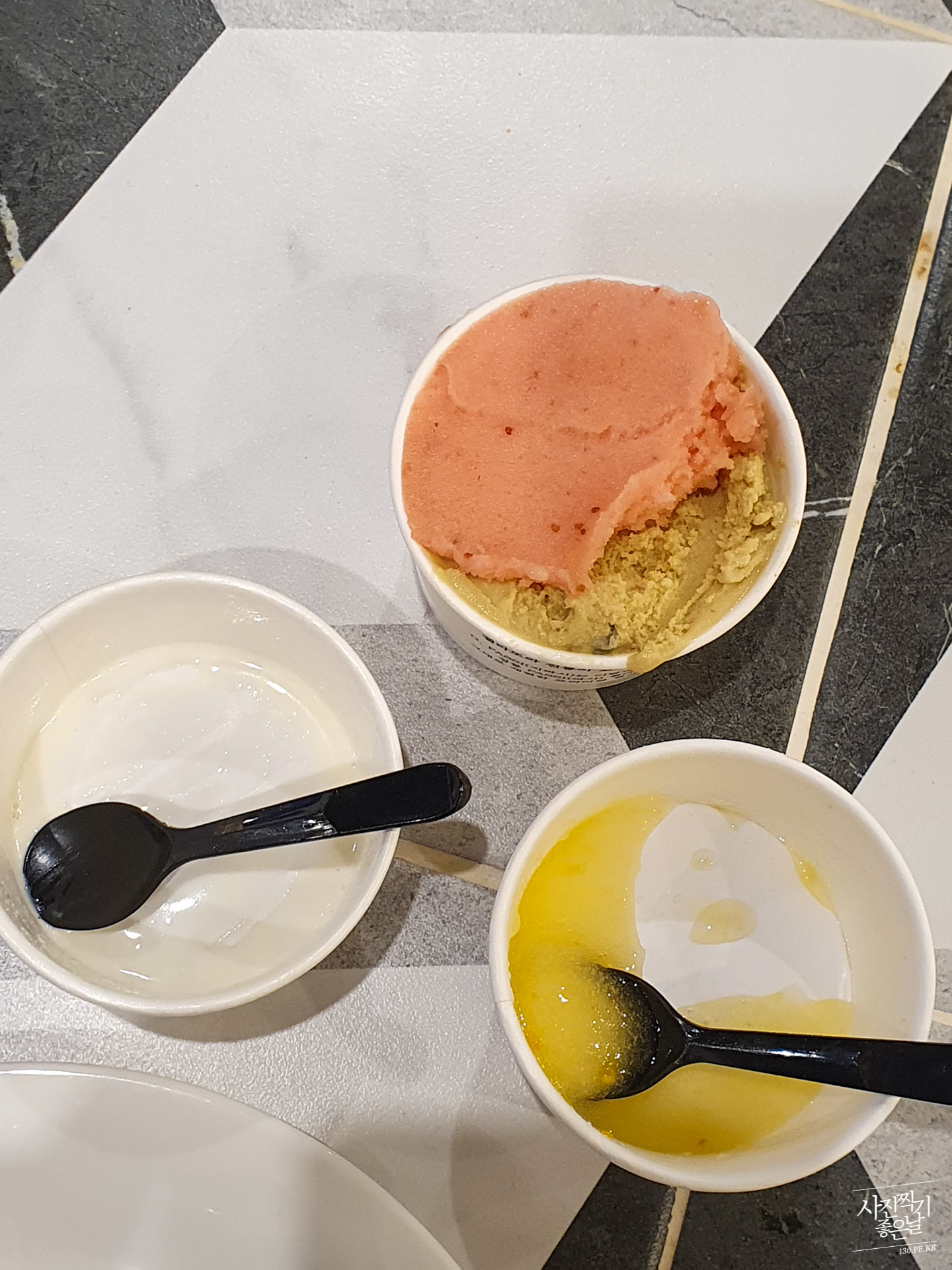 ์ฌํฐ์ผ์ดํฌ๋ ์์ ํ์ต๋๋ค๋ง ์์ด์คํฌ๋ฆผ์ด ๋ง์์ด์ ์์ด์คํฌ๋ฆผ๋ง ๊ณ์ ๋จน์์ด์.