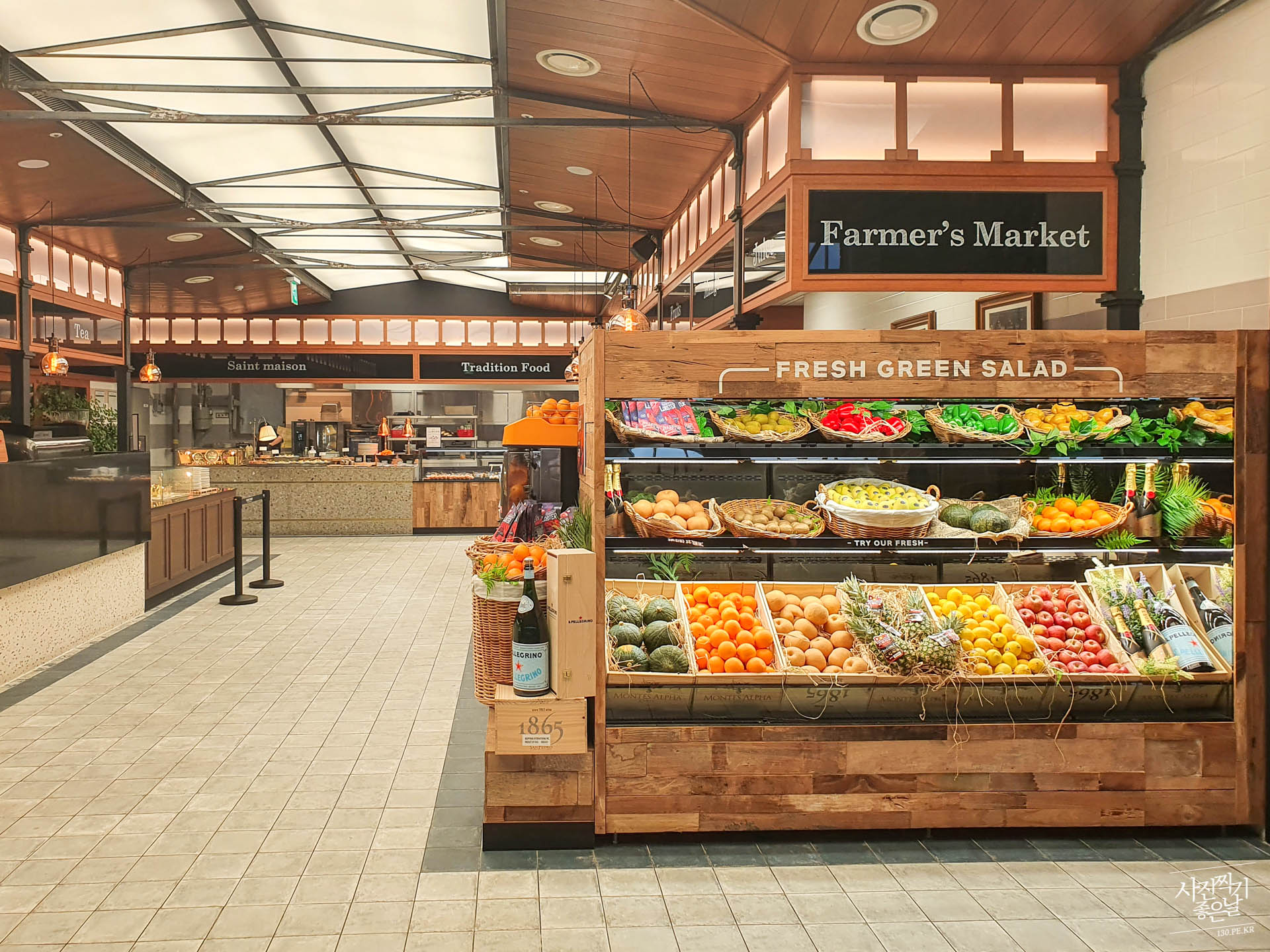 입장 대기하면서 보게 되는 매장 내의 모습. 입구 쪽에 과일과 디저트 코너가 있습니다.