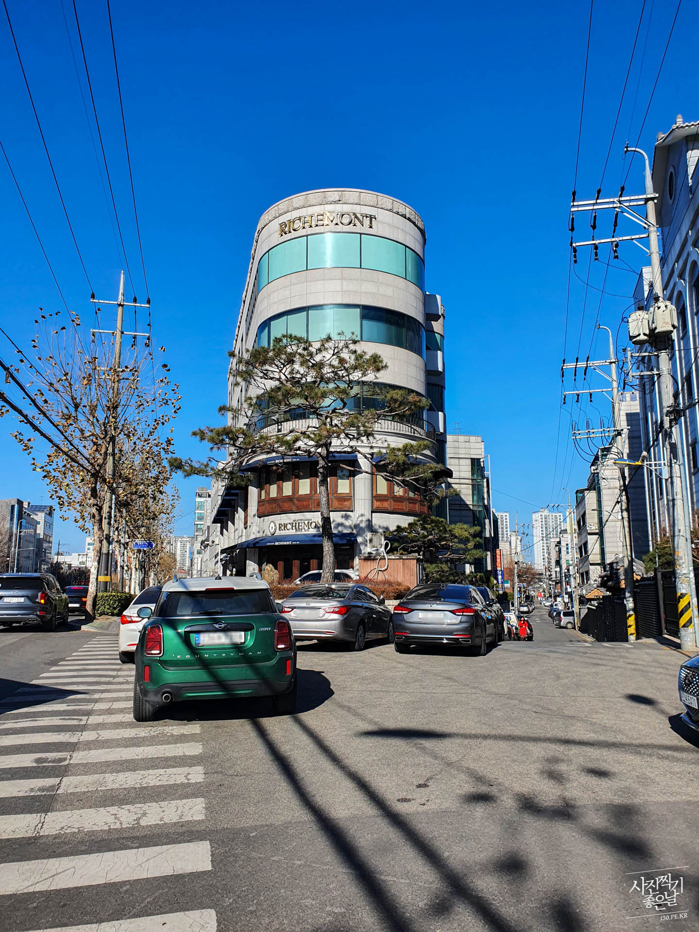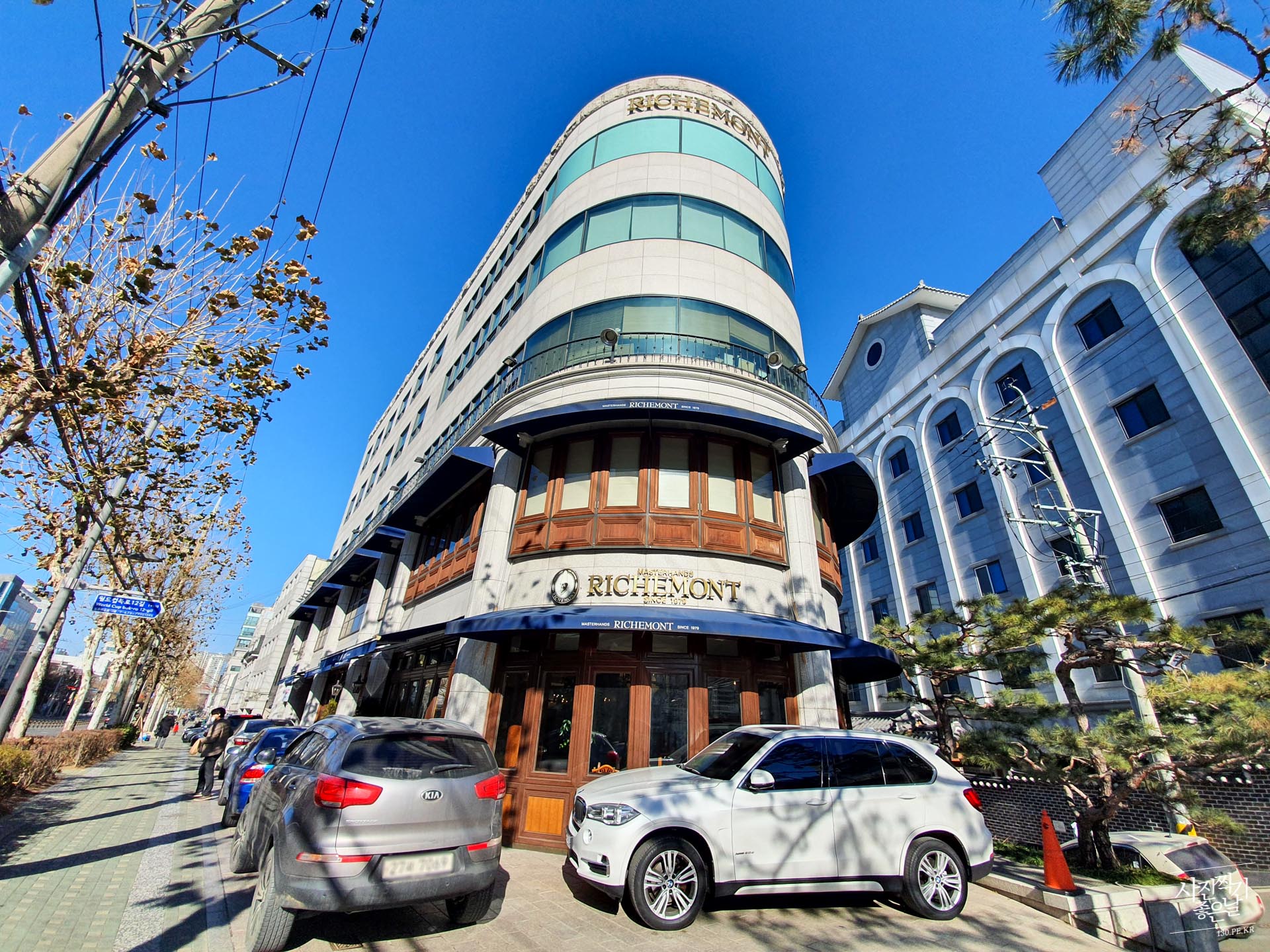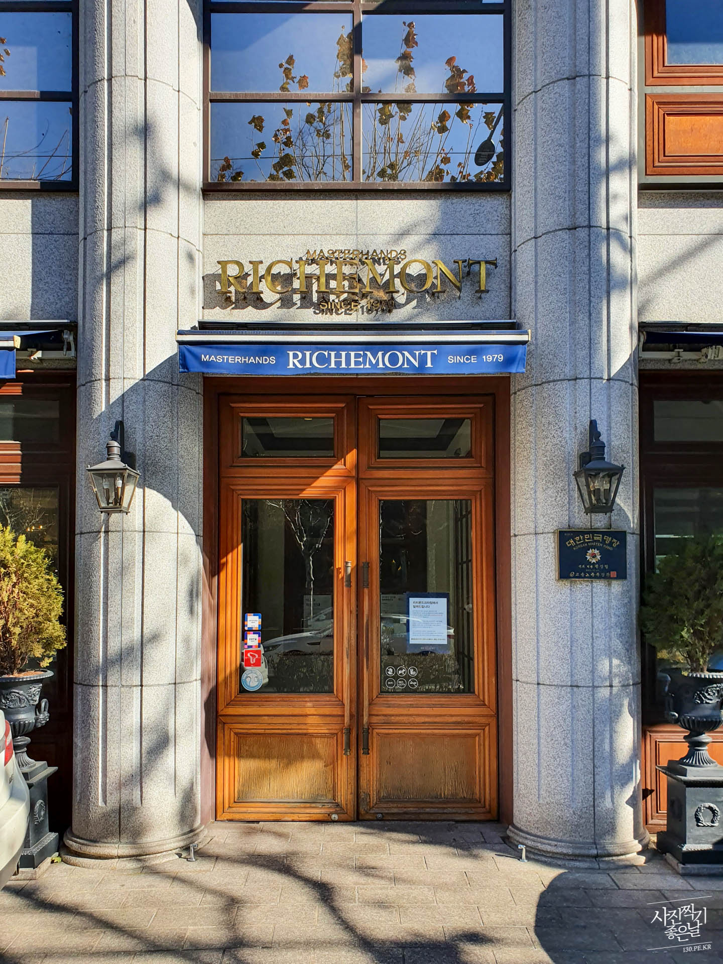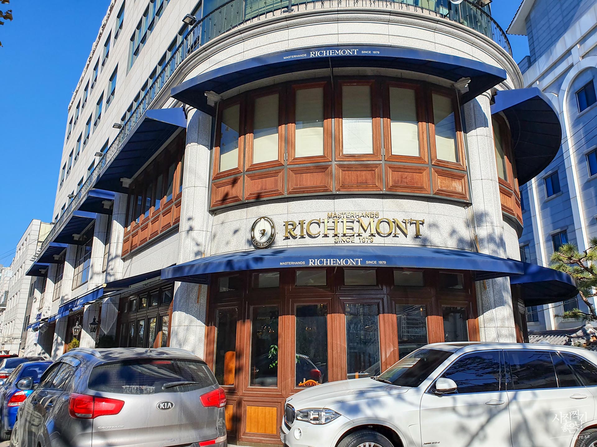 ๋๊ทธ๋ ์ฝ๋๊ฐ ๋ณด์ด๋ 5์ธต์ง๋ฆฌ ๊ฑด๋ฌผ์ RICHEMONT ๊ฐํ์ด ๋ณด์ ๋๋ค.