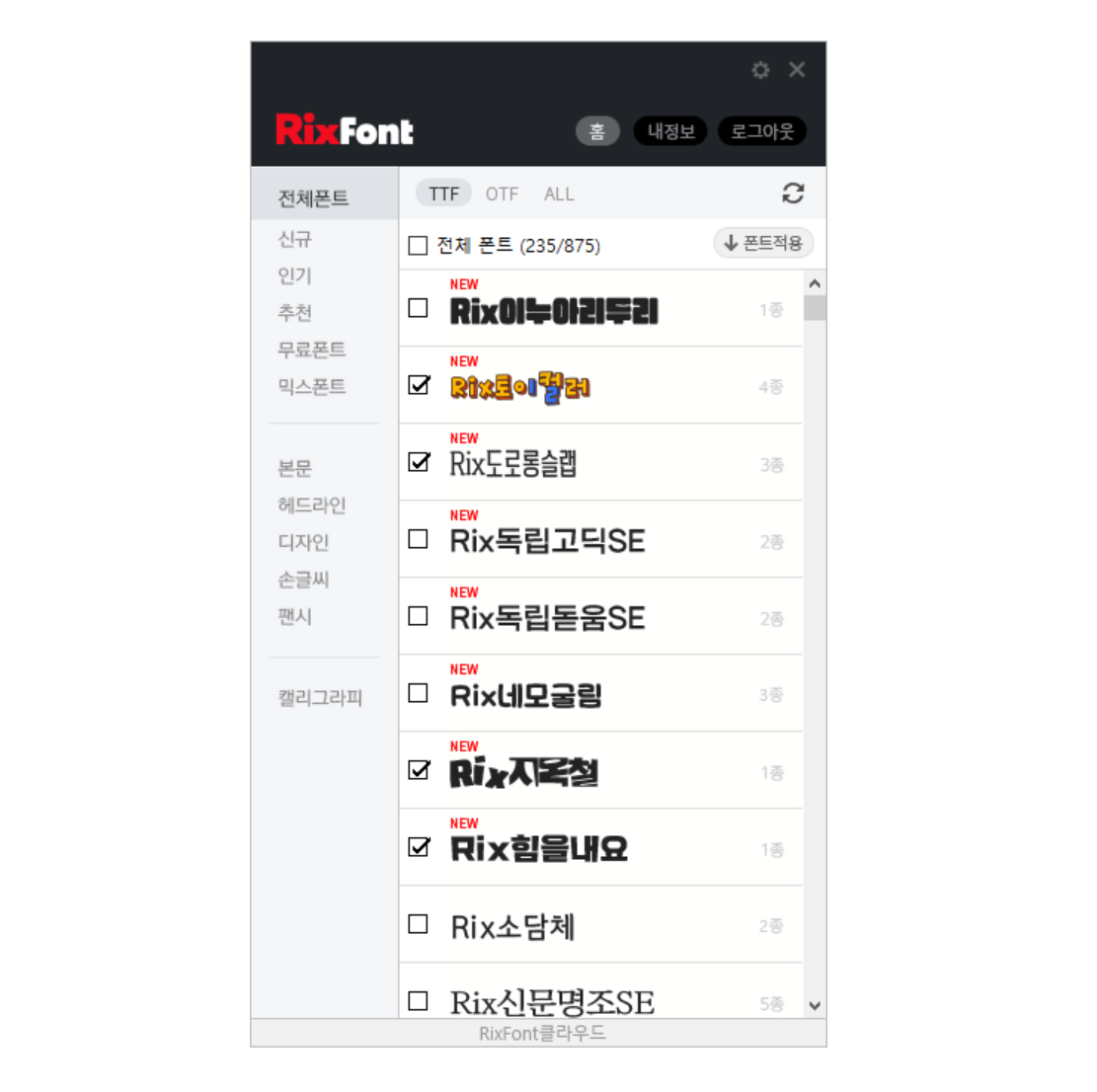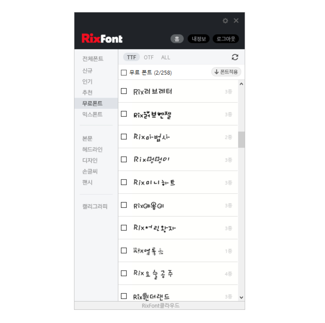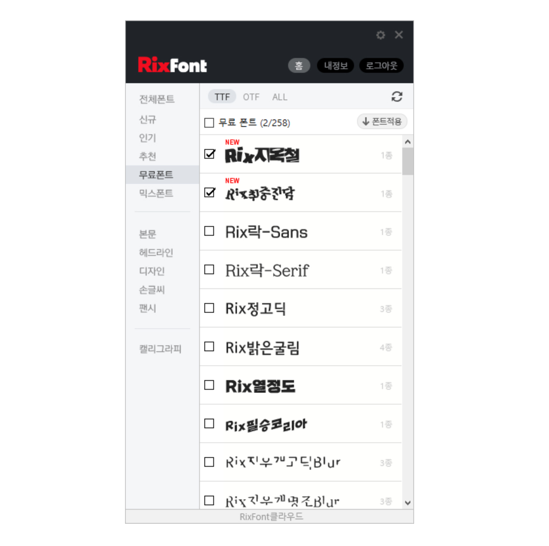 ๋ํ ํฐํธ๋ฆญ์ค ํด๋ผ์ฐ๋ ํฐํธ์ฉ ํ๋ก๊ทธ๋จ์์ ๋ฌด๋ฃํฐํธ๋ฅผ ์ฌ์ฉ๊ฐ๋ฅํ๊ฒ ํด์ฃผ๊ณ ์๋๋ฐ ์ผ์ชฝ์ ๋ฌด๋ฃํฐํธ ํญ์ ๋๋ฌ ๋์ค๋ ํฐํธ๋ค์ ์ฌ์ฉํ ์ ์์ต๋๋ค. ํฐํธ ์ฌ์ฉํ ๋๋ง๋ค ํ๋ก๊ทธ๋จ์ ์ผ์ค์ผ ํ๋ค๋ ๊ฒ ๊ท์ฐฎ๊ธด ํ์ง๋ง ๋ ํนํ ํฐํธ๊ฐ ๋ง์ผ๋ ํ ๋ฒ ๋๋ฌ๋ณด๋ ๊ฒ๋ ์ข์ ๊ฒ ๊ฐ๋ค์.