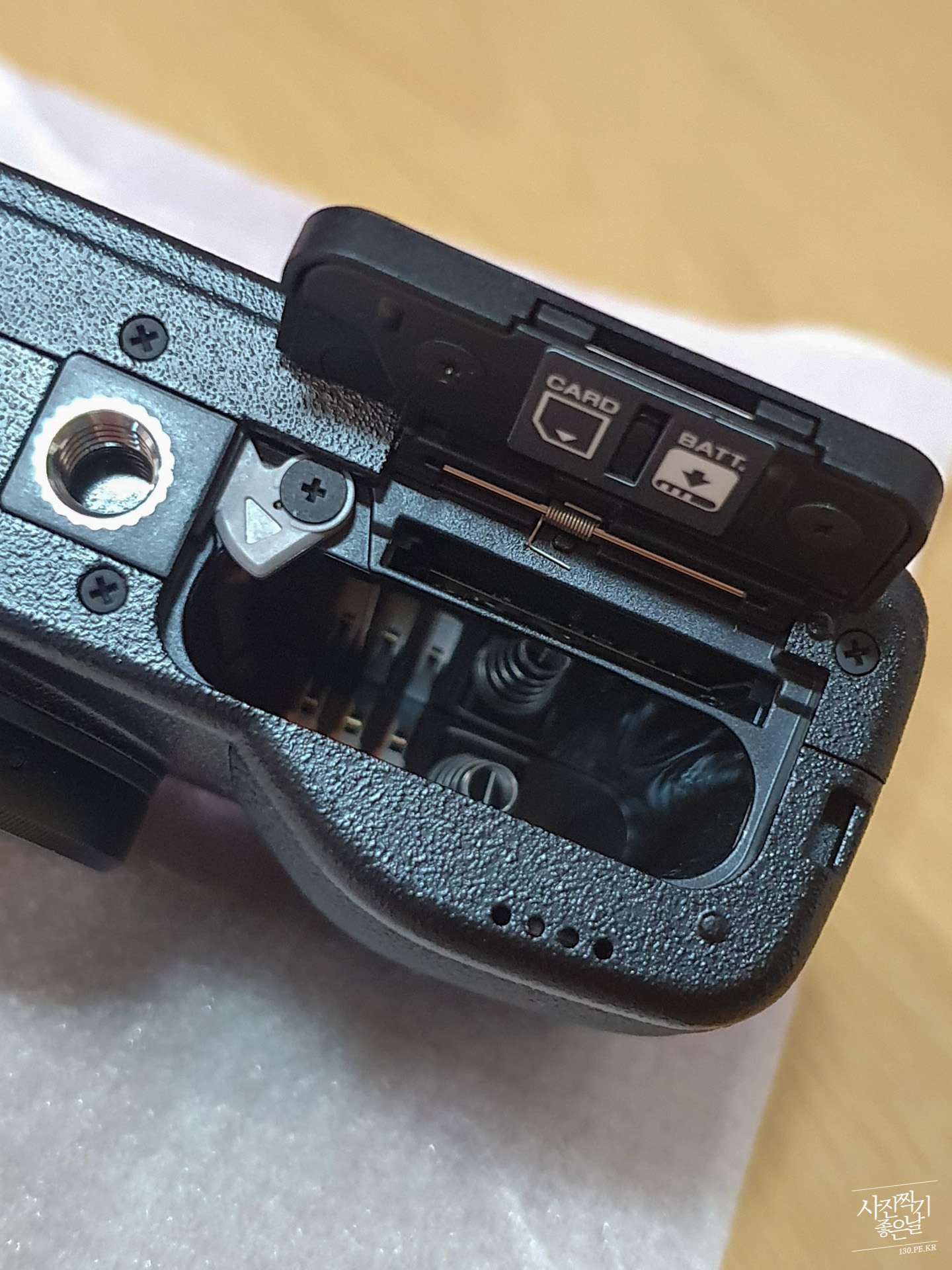 ๋ฐฐํฐ๋ฆฌ์ ๋ฉ๋ชจ๋ฆฌ ์นด๋๋ ์๋์ชฝ์ผ๋ก ์ฝ์ .